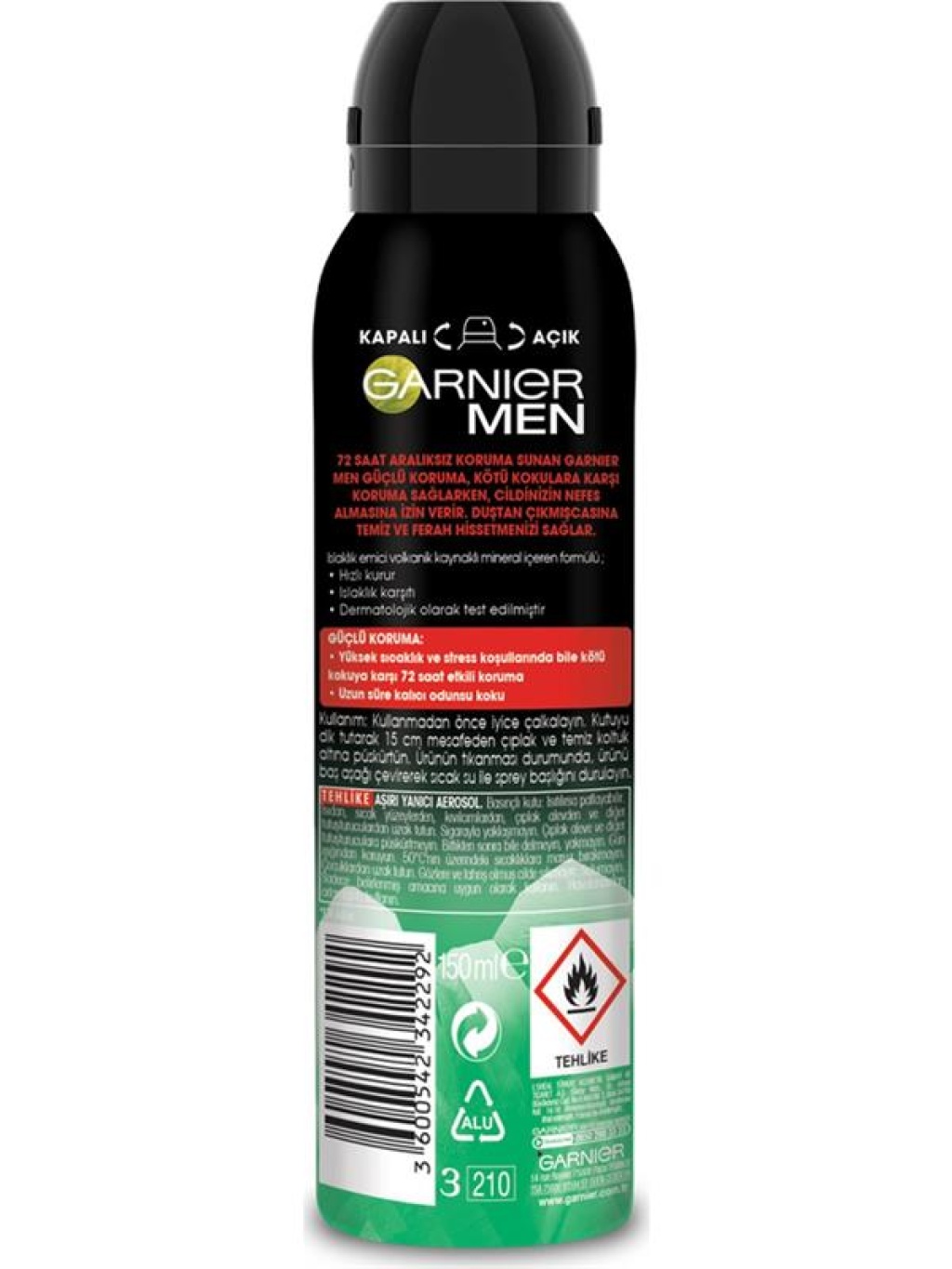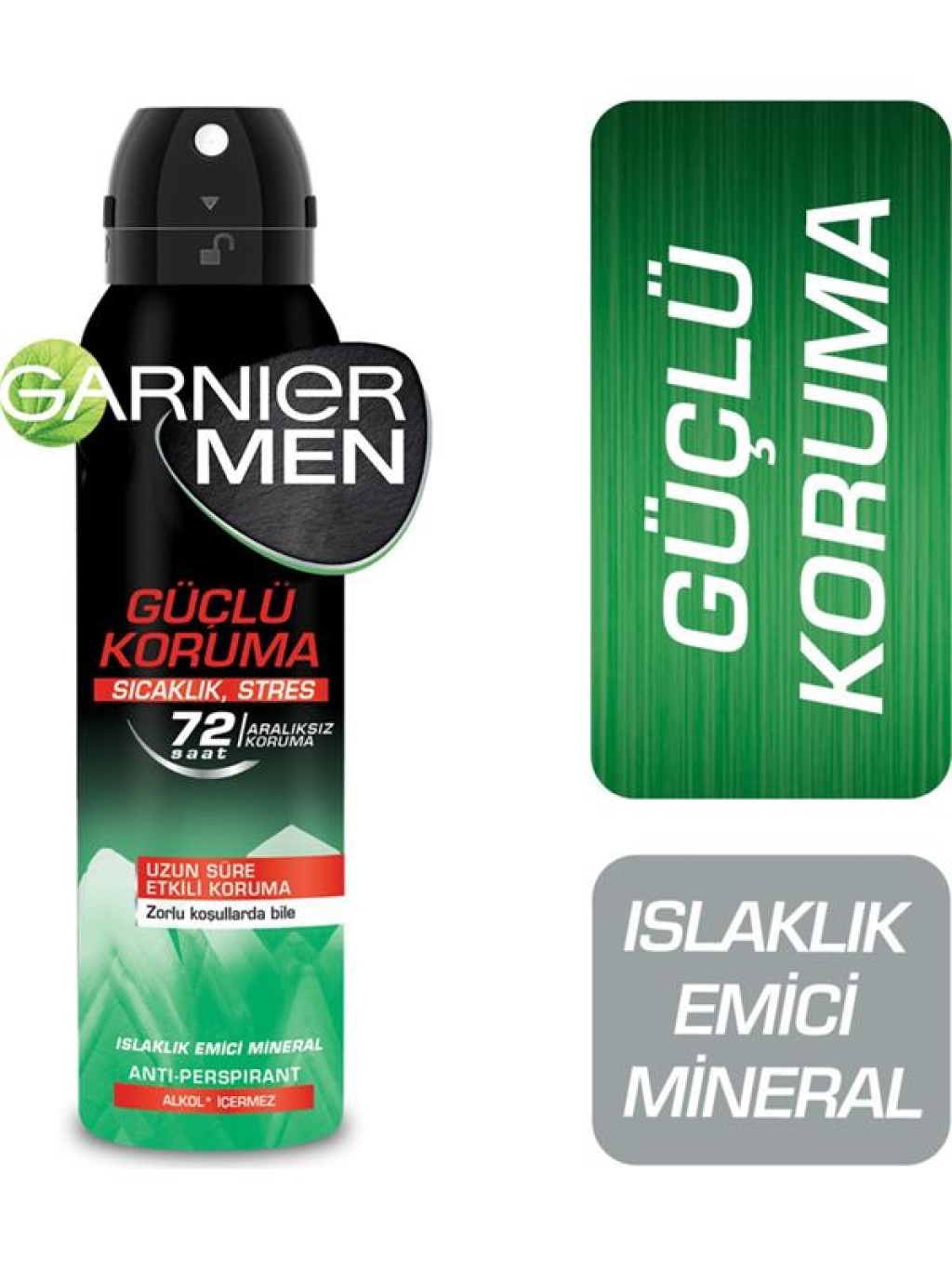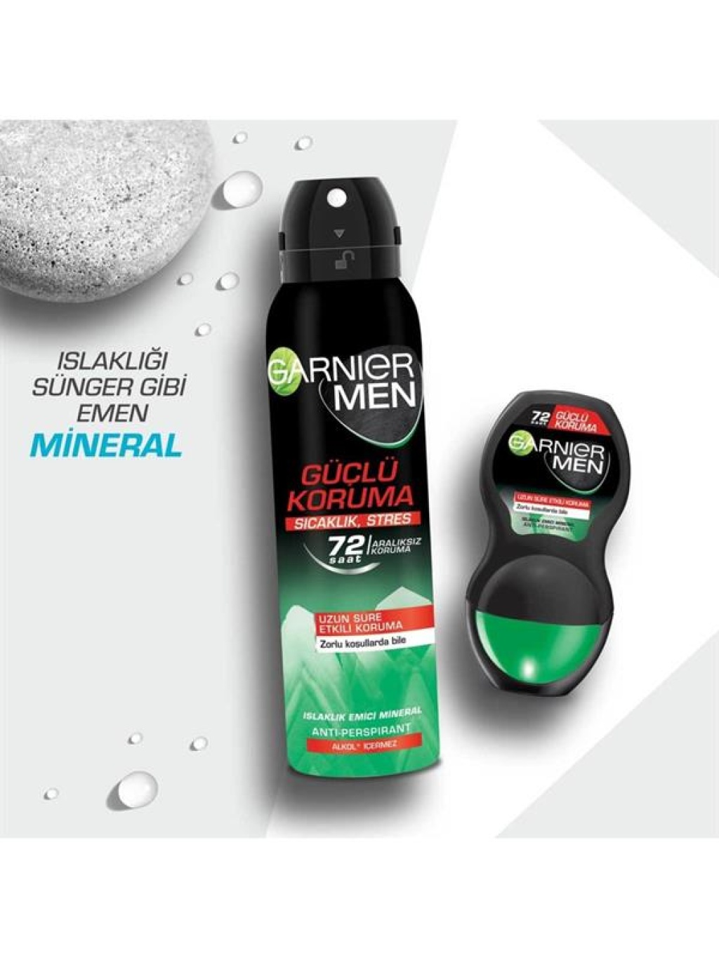 72 saat aralıksız koruma sunan Garnier Men Güçlü Koruma, kötü kokulara karşı koruma sağlarken, cildinizin nefes almasına izin verir. Duştan çıkmışcasına temiz ve ferah hissetmenizi sağlar.Islaklık emici volkanik kaynaklı mineral içeren formülü ;