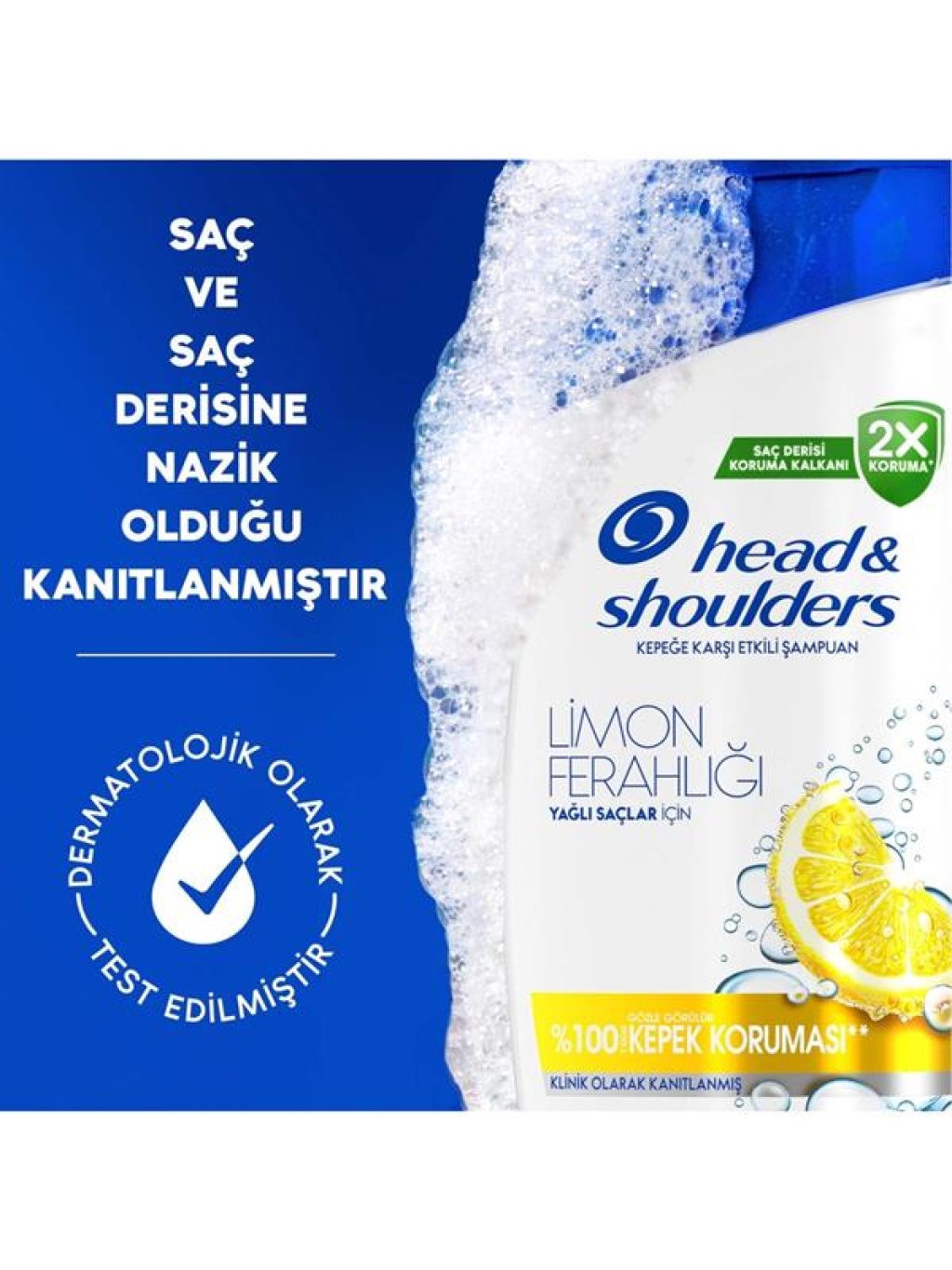 Head & Shoulders Limon Ferahlığı Kepeğe Karşı Etkili Şampuan yağlı saçlara uygundur. İnatçı kepeğe karşı bile etkilidir. Hem kadınlar hem erkekler için günlük kullanıma uygundur, Ferah Limon Kokusu. İnatçı kepeğin geri gelmesini önlemek için gözeneklere giden 2 kat daha fazla koruyucu bileşen ile hem görünür hem de görünmez kepeğe karşı çalışır. Klinik olarak kanıtlanmış, dermatolojik olarak test edilmiş ve pH dengeli formülüyle saçınızda ve saç derinizde temizlik ve ferahlık hissi bırakır.