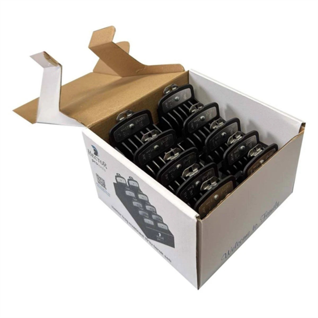 Hector Tıraş Makinesi 10'lu Tarak Seti, farklı saç ve sakal kesim uzunlukları için profesyonel çözüm sunar. Kuaförler, berberler ve ev kullanıcıları için ideal yardımcı settir.