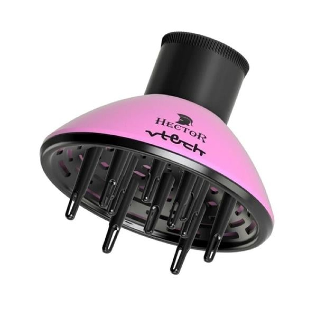 Hector V-Tech Difüzör (Vigo) Pembe; 46-48 mm evrensel bağlantılı hava çıkışı, yüksek ısıya dayanıklı yapısı ve ayarlanabilir hava akış özelliğiyle bukleleri belirginleştirip saça doğal hacim kazandıran profesyonel bir difüzördür.