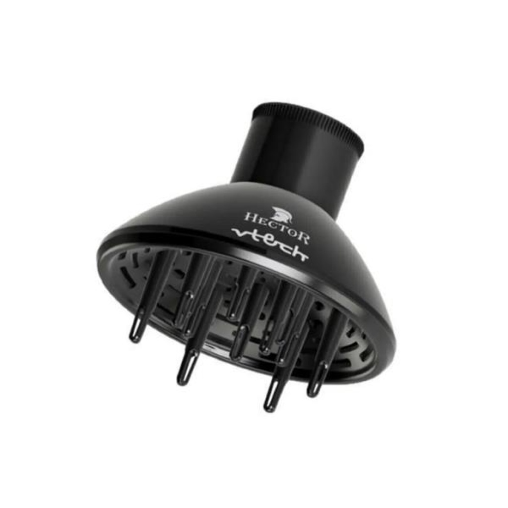 Hector V-Tech Vigo serisi difüzör, saç kurutma makinelerine takılarak hacim kazandırmak ve doğal bukleleri belirginleştirmek amacıyla tasarlanmıştır. Yaklaşık 165 mm dış çapı ve 145 mm yüksekliği ile geniş yüzeyli yapısı sayesinde daha fazla saç alanını aynı anda kurutur ve şekillendirir. 46–48 mm çapındaki hava çıkışına sahip çoğu profesyonel fön makinesiyle uyumludur. Yüksek ısıya dayanıklı plastikten üretilmiştir ve uzun süreli kullanımlarda formunu korur. Siyah renkli bu model, estetik ve işlevselliği bir arada sunar.