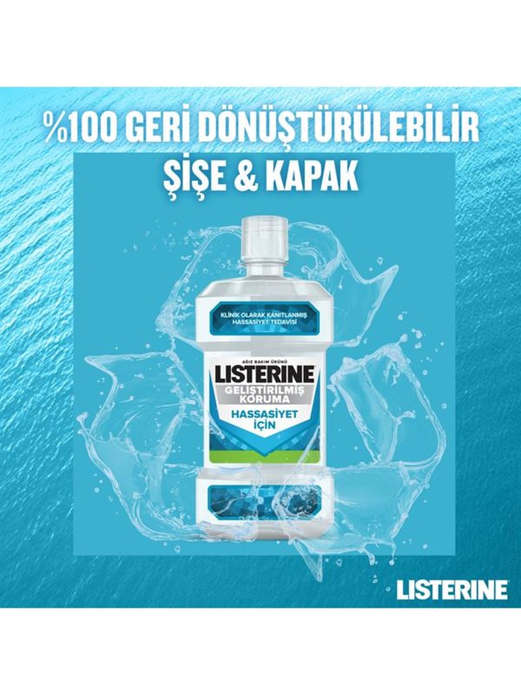 Listerine Geliştirilmiş Koruma Hassasiyet için Ağiz Bakim Suyu. Dondurmanizi iştahla isirip, hassasiyetiniz nedeniyle ağri ve sizi ile irkildiğiniz oldu mu? yanitiniz evet ise, kesinlikle hassas dişlere özel bir ağiz bakim suyuna ihtiyaciniz var demektir. Listerine hassasiyet için geliştirilmiş koruma ağiz bakim suyunun, hem hassasiyete karşi uzun süreli koruma ve rahatlama hem de ağiz kokusuna karşi 24 saate kadar koruma sağladiği klinik olarak kanitlanmiştir. uzun süreli koruma için hassasiyet kaynaklarini bloke eder. bu patentli bakim ürünü, diş hassasiyetini azaltmak için derinlemesine bir hassaslik korumasi sağlayacak şekilde, açiktaki sinirlere fiziksel bir kalkan oluşturur. tükürük ile temas ettiğinde, bu benzersiz, klinik etkinliği kanitlanmiş formül, açikta kalan diş yüzeylerindeki mikroskobik deliklerde küçük kristaller oluşturarak, dişlerinizi hassasiyete karşi güvenceye alir. ağzinizi günde iki kez çalkalamaniz, sadece nefesinizi tazelemenize yaramaz. ayni zamanda, tüm ağiz temizliğinde önemli bir rol oynar. dişlerinizi sadece firçalayarak, ağzinizin ancak %25'ine ulaşabilirsiniz. bu güçlü sivi, dişleriniz ve diş etleriniz de dahil, ağzinizin tamamindaki bakterilerle savaşir. araştirmalar, listerine ağiz bakim ürününün, 30 saniye içinde ağizdaki bakterileri öldürdüğünü ve sürekli kullanimda farki hissedeceğinizi göstermektedir. listerine olarak biz, sadece ağiz sağliğinizi korumaniza yardimci olmakla kalmiyoruz, ayni zamanda gezegenimizi de korumaya kararliyiz. listerine olarak, hep daha sorumluluk sahibi şekilde davranmaya ve daha sağlikli bir gezegen yaratmaya katkida bulunmayi amaçliyoruz. %100 geri dönüştürülebilir şişe ve kapaklar kullaniyoruz. yeni şişelerimiz, %50 oraninda tüketici kullanimindan sonra geri dönüştürülmüş plastik içeriyor. tesis bulunan durumlarda güvenlik kilidi hariçtir.