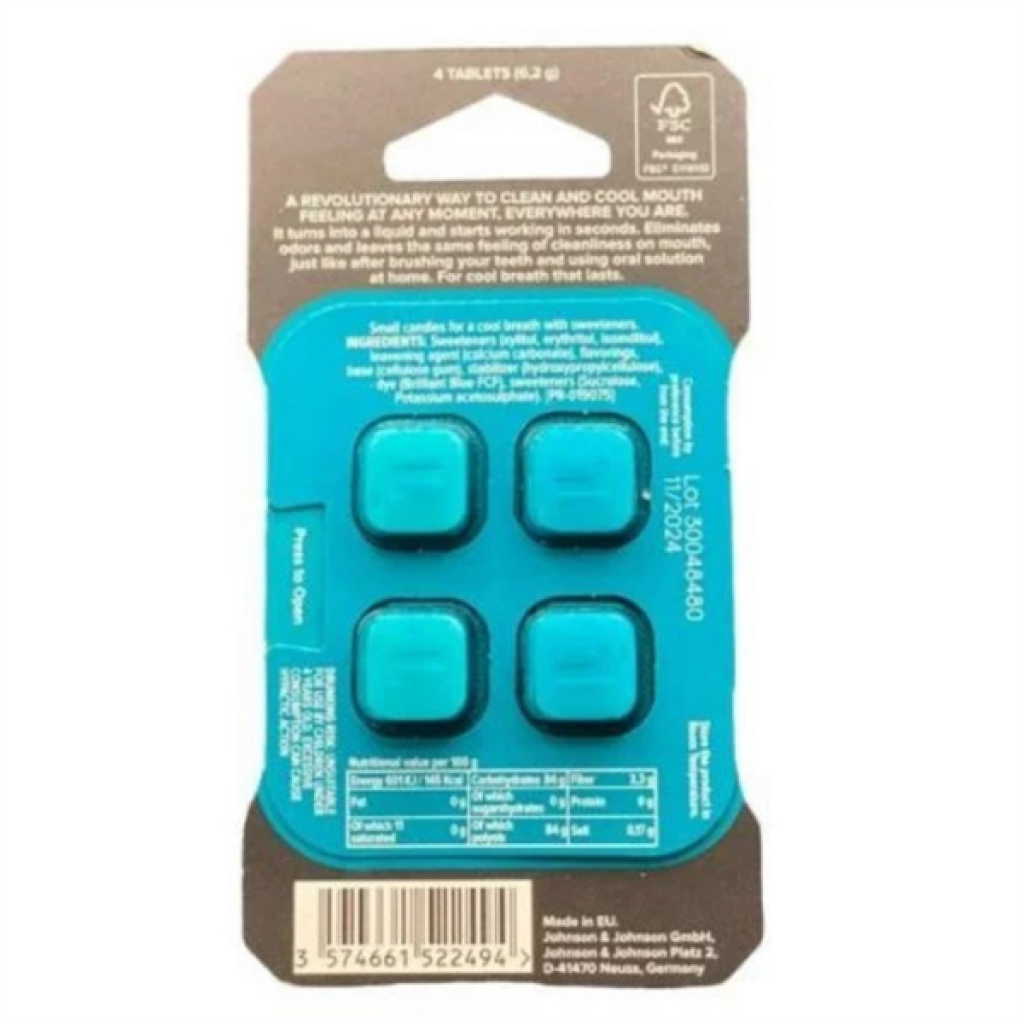 Listerine Go Tabs sıvıya dönüşür ve saniyeler içinde çalışmaya başlar.