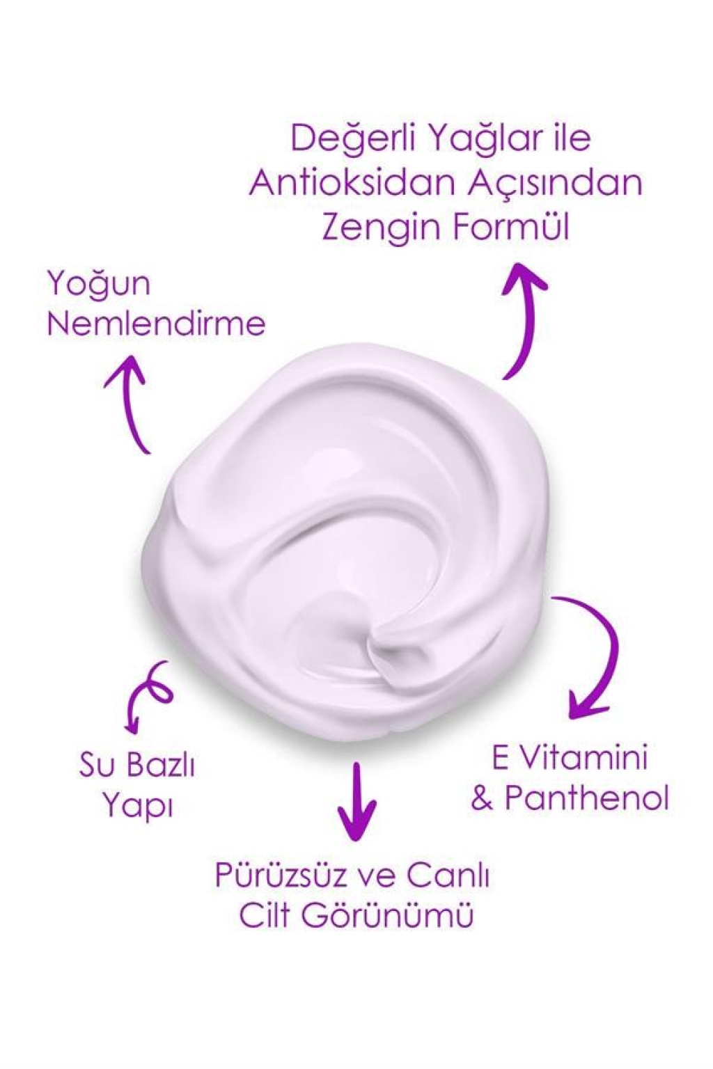 İçindekiler: Aqua, Glycerin, Propylene Glycol, Isopropyl Myristate, Glyceryl Stearate, Cetearyl Alcohol, Ceteareth-20, Ceteareth-12, Cetyl Palmitate, Dimethicone, Phenoxyethanol, Tocopheryl Acetate, Panthenol, Ethylhexylglycerin, Vaccinium Myrtillus Seed Oil, Parfum, CI 16255, Passiflora Incarnata Seed Oil, CI 42090, Linalool.