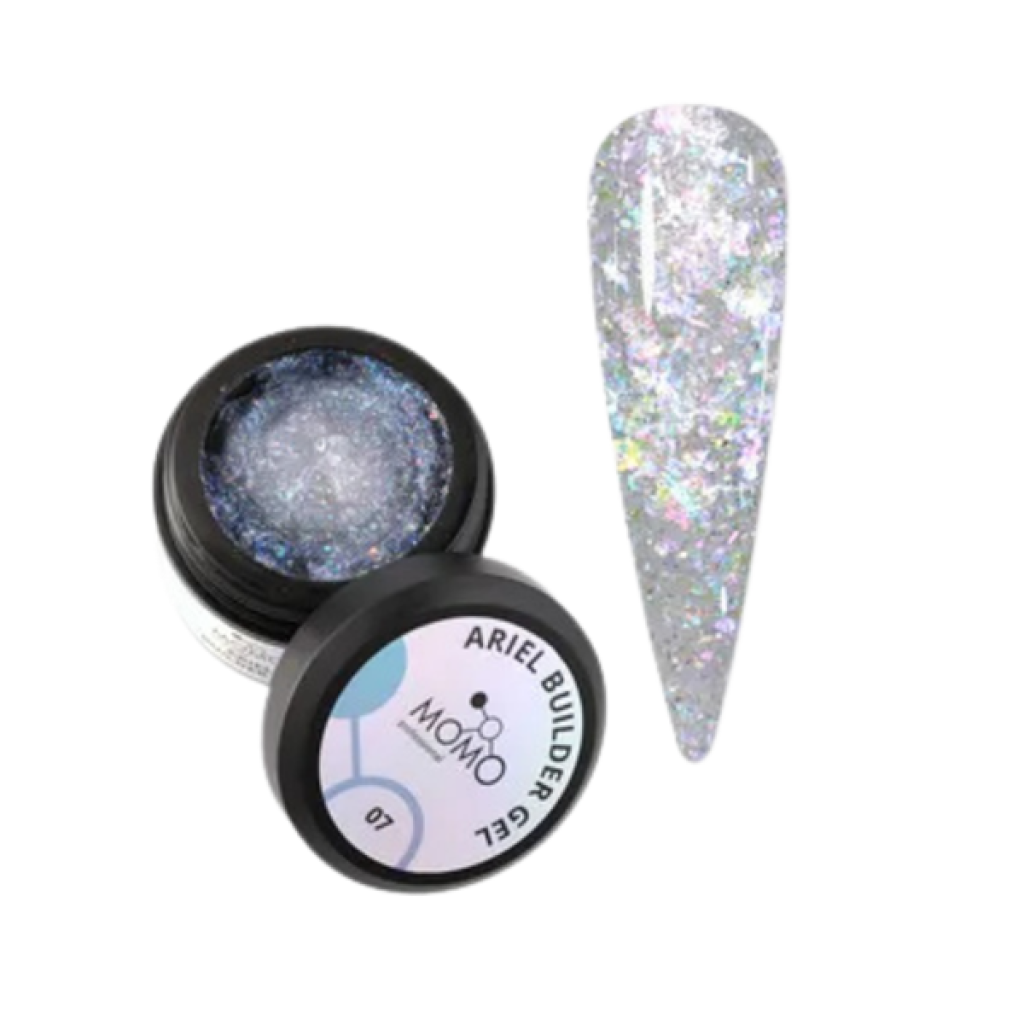MomoProfessional’ın özel serisi olan Ariel Builder Gel, tırnak tasarımlarınızdakullanabileceğiniz hem üst hem de alt form tasarımlarında ideal, yoğun simiçeriğiyle büyüleyici ve şık bir görünüm sunan protez tırnak jelidir. Özelliklenail art çalışmalarında simli, ışıltılı ve vitray efektli tasarımlar içinmükemmeldir.