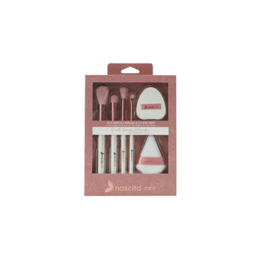 ** Set içeriği: 4 adet makyaj fırçası, 2 adet makyaj pufu