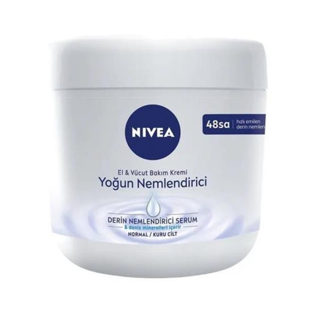 Yeni NIVEA Yoğun Nemlendirici El & Vücut Bakım Kremi, nemlendirici serum ve deniz mineralleri içeren formülü ile ilk kullanımdan sonra cildinizi pürüzsüzleştirir ve 48 saat derinlemesine nemlendirme sağlar.