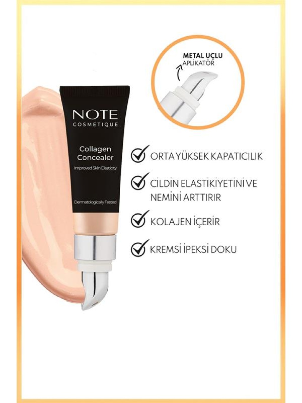 <p data-end="335" data-start="129">Note Collagen Concealer n°01, kolajen destekli formülüyle göz altı morluklarını, cilt kusurlarını ve kızarıklıkları kapatarak doğal bir görünüm sunar. Hafif yapısıyla çizgilere dolmaz, gün boyu kalıcıdır.</p>