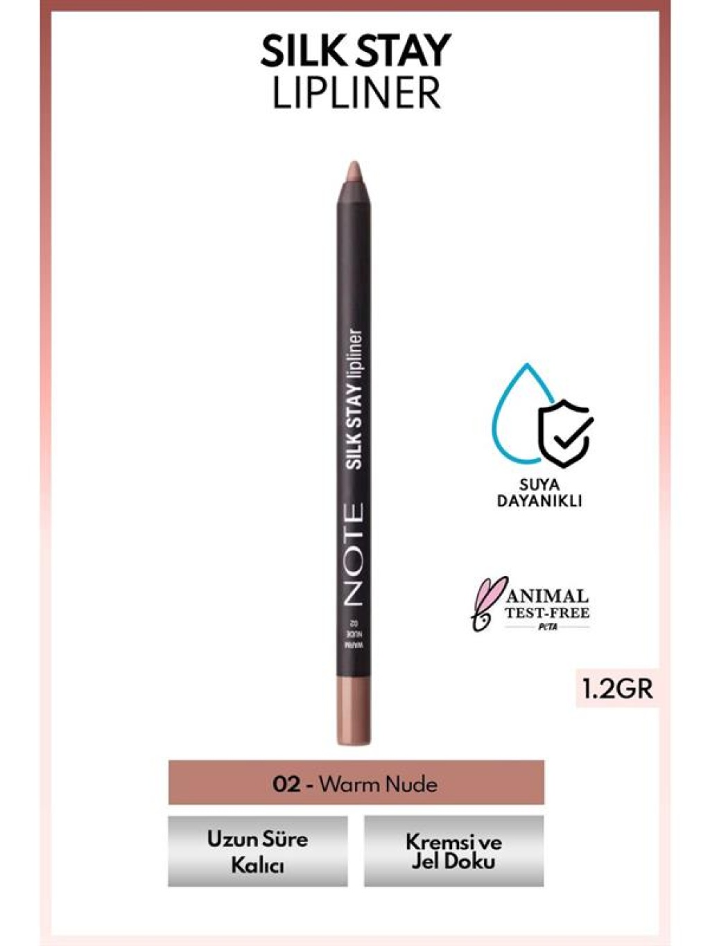 <p data-end="468" data-start="21">Note Silk Stay Lipliner 1,2gr 02 Warm Nude; sıcak nude tonu ile dudak hattını daha net göstermeye ve rujun görünümünü daha düzenli hale getirmeye yardımcı dudak kalemidir. Özellikle şeftali, bej ve sıcak alt tonlu nude rujlarla uyum sağlar; dudak formunu belirginleştirirken geçişleri daha profesyonel göstermeyi destekler. Günlük makyajda doğal bir çerçeve, profesyonel uygulamalarda ise rujun “yerinde durmasına” yardımcı bir zemin gibi çalışır.</p><p data-end="490" data-star
