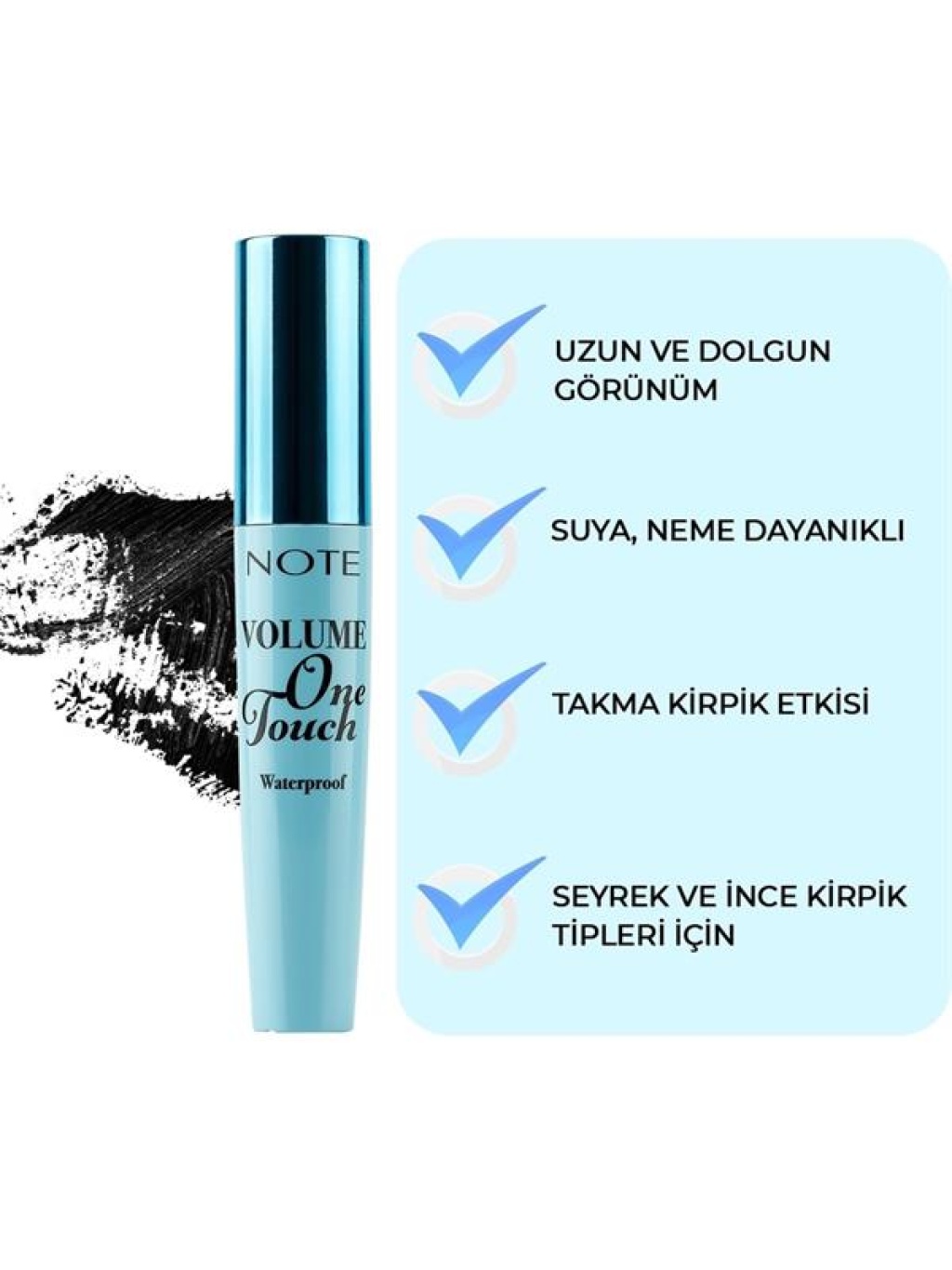 One Touch Maskara suya dayanıklı formülü ile ekstra kalıcı! Özel tasarım kıl fırçası ile tek dokunuşta fark yaratan etki sağlar.Kirpikleri tek tek ayırarak, daha uzun va hacimli bir görünüm sağlar.