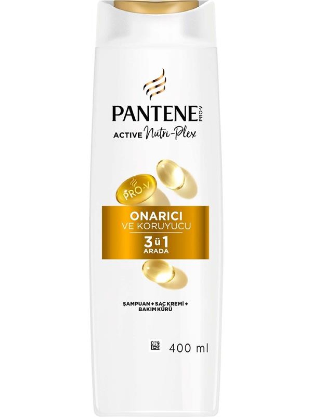 Tüm işlemleri tek adımda gerçekleştiren üstün saç bakımı çözümünüz Pantene Onarıcı & Koruyucu 3 ü 1 Arada Şampuanı keşfedin. PRO-V ve ACTIVE NUTRI-PLEX teknolojisi ile güçlendirilerek titizlikle tasarlanmış olan bu yenilikçi ürün, saçınızı aynı anda hem temizler hem açar hem de bakım yapar. Bir şampuandan çok daha fazlası olan bu ürün, saç tellerini koruyan ve saçları içten dışa güçlendiren kapsamlı bir bakım sağlar. İlk kullanımdan itibaren gözle görülür yıpranma belirtilerini tersine çevirmeye başlayan bu şampuan, saçlarınıza pürüzsüzlüğünü ve ışıltısını geri vererek sağlıklı bir görünüm kazandırır. Renklendirici ve mineral yağ içermeyen formülüyle saçları saç şekillendirme işlemlerinin neden olduğu yıpranmalara karşı güçlendirerek saçların kırılmasını önler, saçlara sağlıklı bir ışıltı ve pürüzsüzlük sağlar. Swiss Vitamin Institute tarafından test edilmiştir.