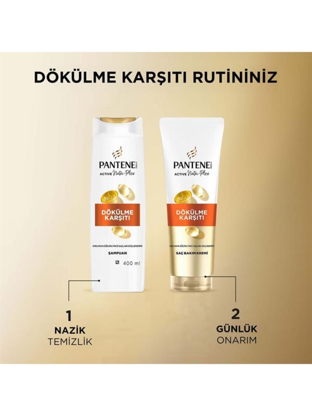 Saçlarınızı en üst düzeyde besleyip koruyan Pantene Dökülme Karşıtı Şampuanı keşfedin. PRO-V ve yenilikçi ACTIVE NUTRI-PLEX teknolojisi ile zenginleştirilmiş hassas formülümüz, saçlarınızı temizlerken bir yandan da besleyici maddelerle besler. Saç kremimiz ile birlikte kullanıldığında kopma kaynaklı saç dökülmesini kontrol altına alır ve saçları tekrar kopmaya karşı korur. Swiss Vitamin Institute tarafından test edilmiştir. Pro-V Active Nutri-Plex Anti Hair Fall Şampuan ile en üst düzeyde saç bakımı keyfini deneyimleyin.