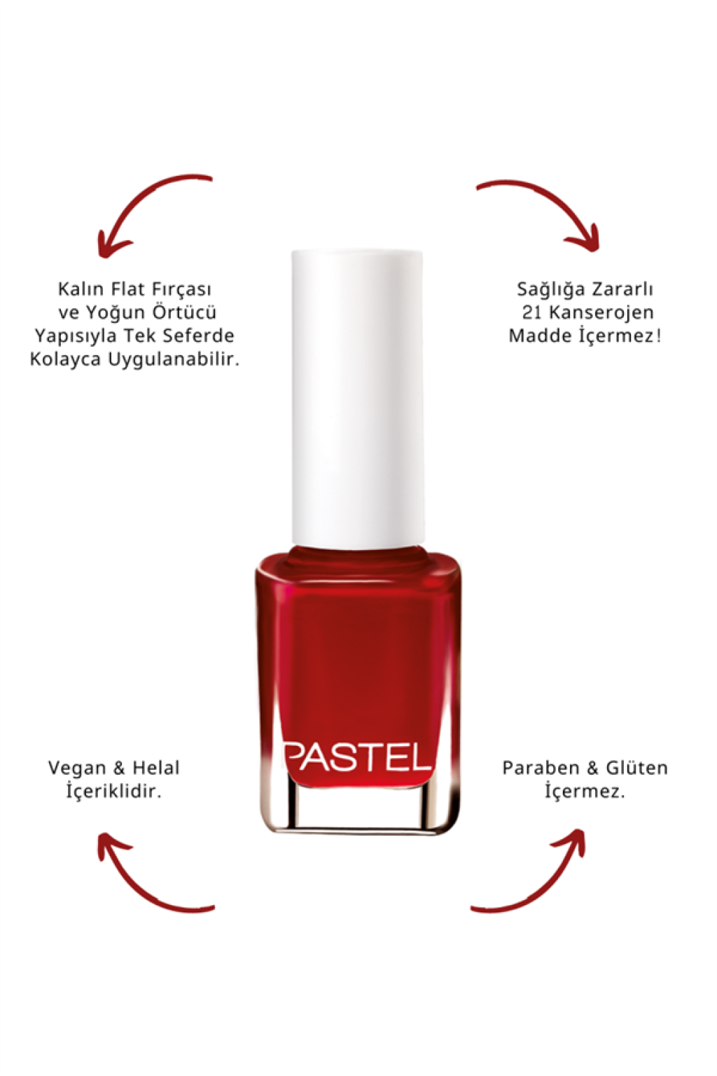 Akıcı formülü sayesinde çizgi bırakmadan kolay sürülür, kısa sürede kurur ve uzun süre dayanıklılığını korur. Tek katta bile yoğun renk verir. Nail art ve kombin manikür uygulamalarında kusursuz bir ara ton olarak görev alır. Salonlarda güvenle kullanılan, göz alıcı bir seçimdir.