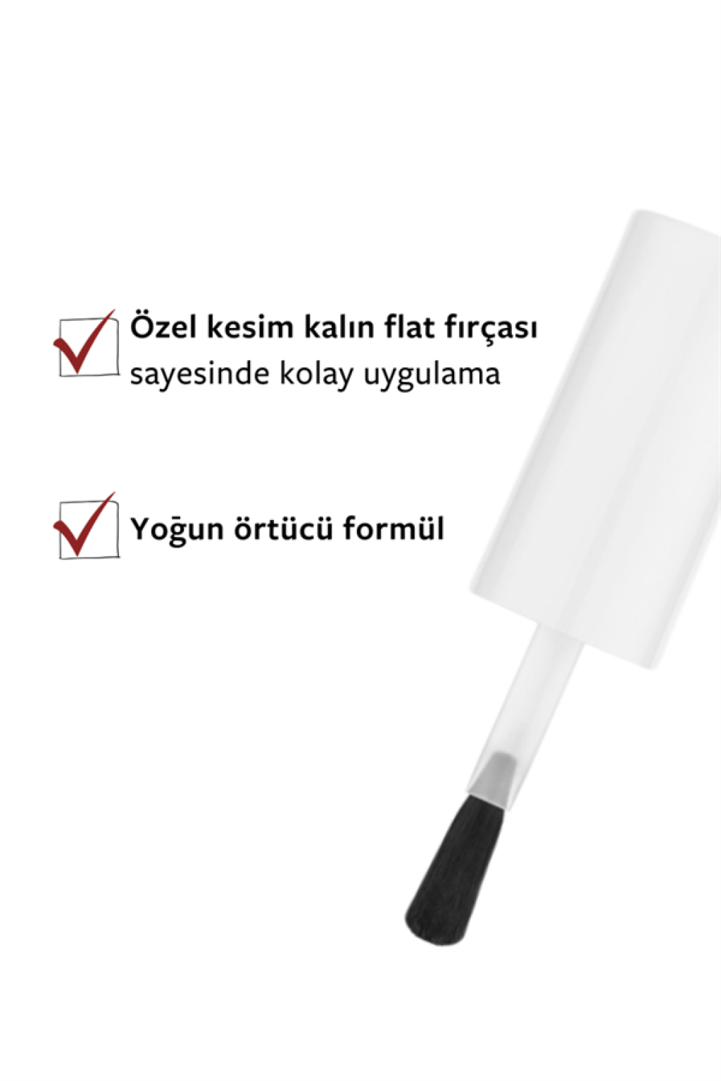 Daha temiz bitiş için serbest kenarı mühürleyin ve kütikül hattında fırçayı hafif baskıyla yönetin