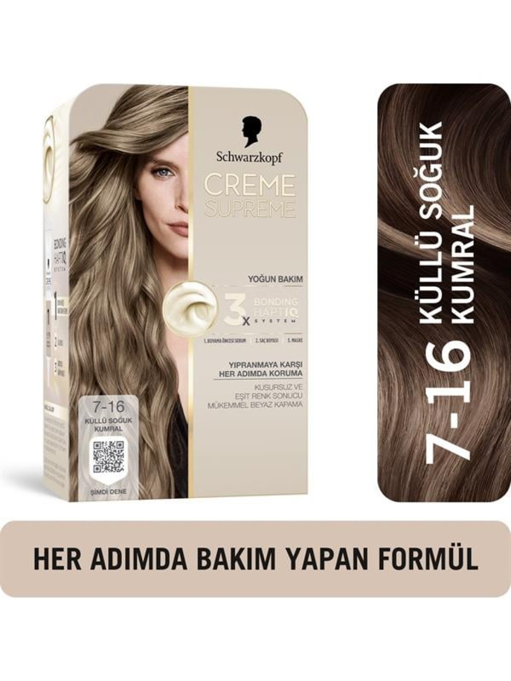 Creme Supreme Yoğun Bakım Full Kit 7-16 Küllü Soğuk Kumral Saç Boyası