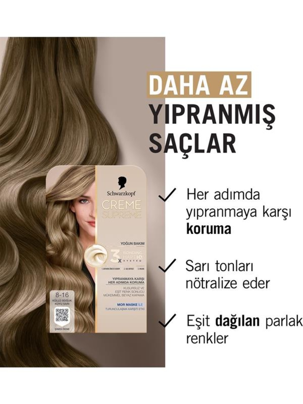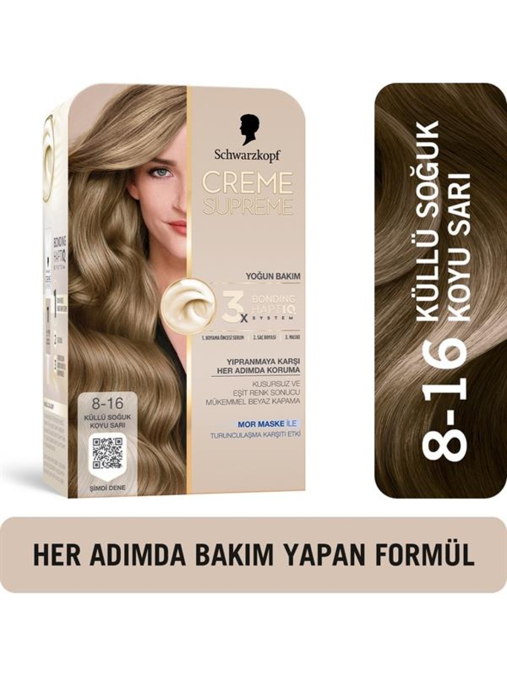 Creme Supreme Yoğun Bakım Full Kit 8-16 Küllü Soğuk Koyu Sarı Saç Boyası