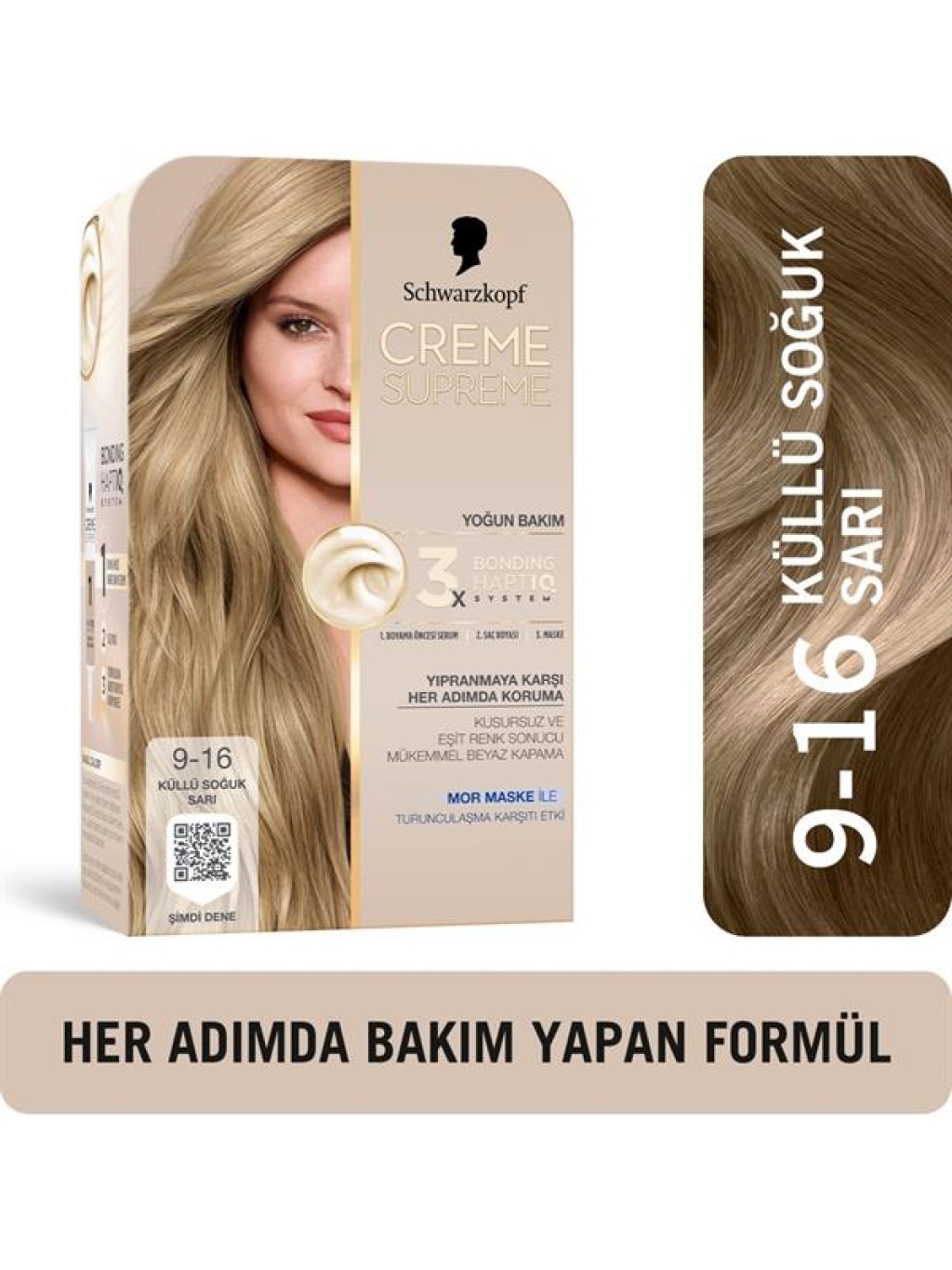 Creme Supreme Yoğun Bakım Full Kit 9-16 Küllü Soğuk Sarı Saç Boyası