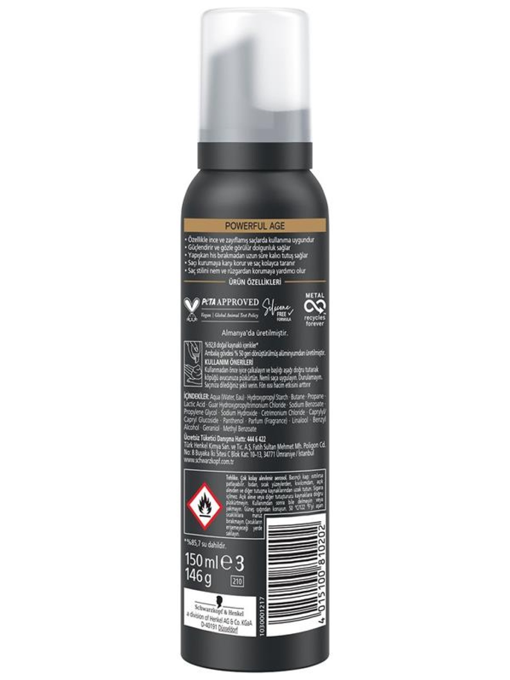 Taft Powerful Age Silikonsuz & Kalıcı Tutuş Saç Köpüğü 150 ml