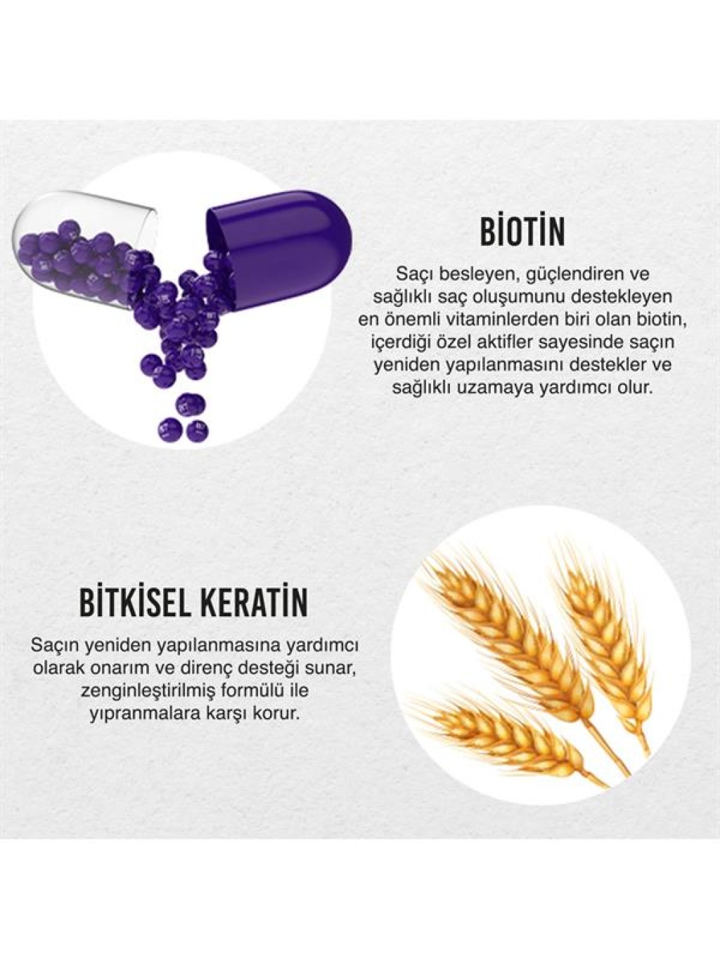 • Aktifler: Biotin, Keratin kompleksi (pürüzsüz ve bakımlı his için)