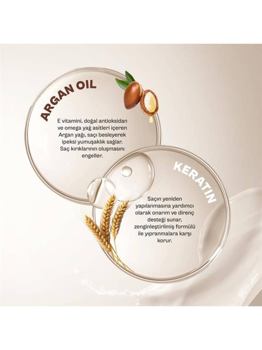 Gücünü Argan Oil ve Keratin’den alan şampuan, özel olarak geliştirilmiş formülü ile saçlarını beslerken gün boyu göz alıcı parlaklık sağlar. Pürüzsüzleştirici etkisi sayesinde kökten uca parlayan ve güçlü saçlara sahip olmanızı destekler. Saçın yeniden yapılanmasına yardımcı olur ve yıpranmalara karşı koruma, onarım ve direnç desteği verir.
