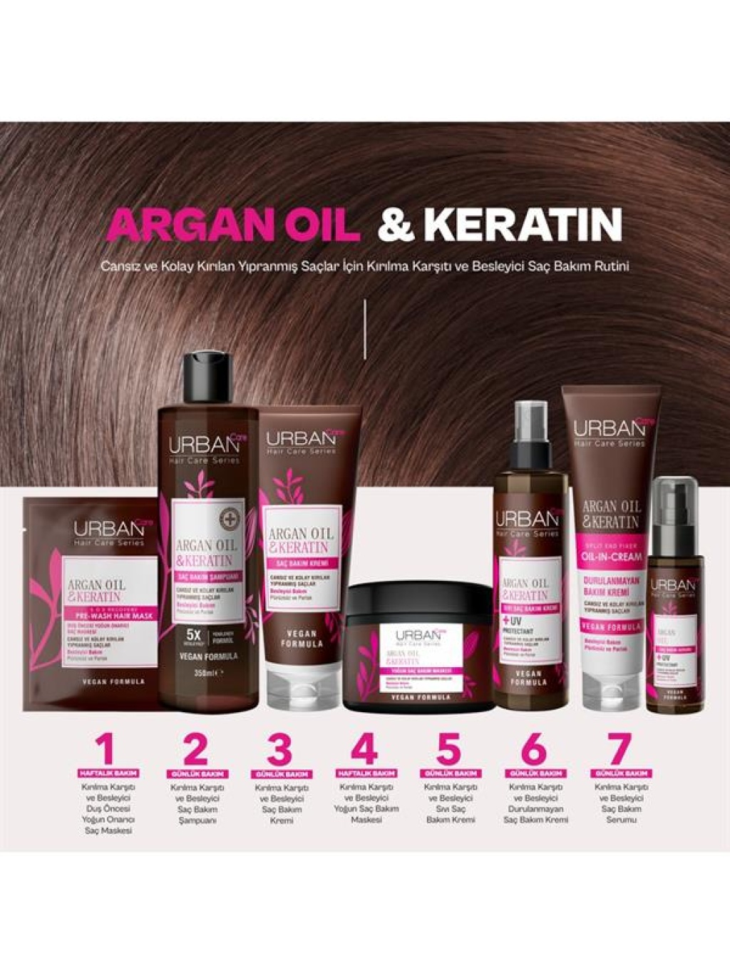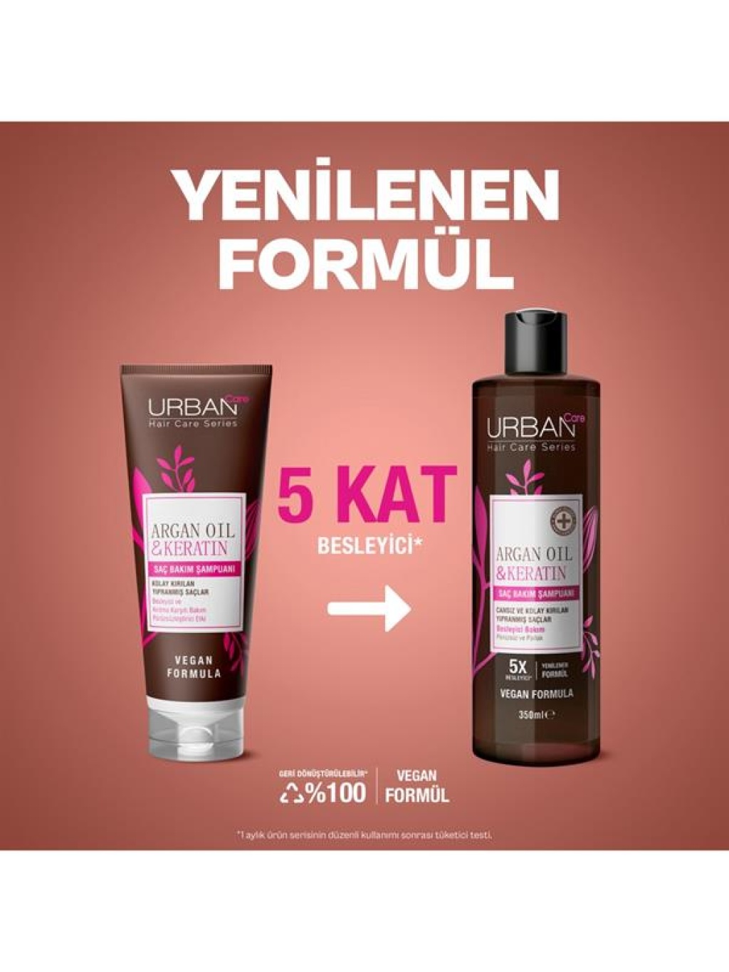 URBAN Care Argan Oil & Keratin Besleyici ve Kırılma Karşıtı Saç Bakım Şampuanı, kolay kırılan ve yıpranmış saçlar için özel olarak geliştirilmiştir. Yenilenen formülü ile cansız ve kolay kırılan saçların önüne geçerek beslenmiş, parlak ve pürüzsüz saçlara sahip olmanızı hedefler.