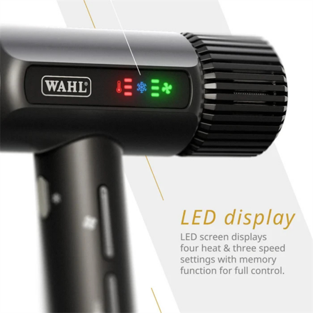 Wahl Vanquish Kurutma Makinesi LD190X ; dört ısı seviyesi, üç hız ayarı, LED ekran ve otomatik temizlik fonksiyonlarıyla profesyonel sınıf hızlı, kontrollü ve konforlu saç kurutma sağlar.