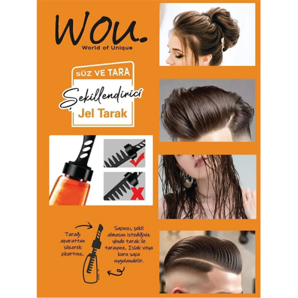 Saç stiliniz için kolaylık sağlar. Yapmanız gereken tek şey saçınızı taramak. İçeriğindeki yağlarla saçlarınıza bakım yaparken şekil verebileceksiniz. Kullanım Şekli: Ürünün kapağını açınız. Tarağı aparattan süzerek çıkartınız. Saçınızı, şekil almasını istediğiniz yönde tarak ile tarayınız. Islak veya kuru saça uygulanabilir. Ellerinizle şekil vermenize gerek yoktur. Uyarı: Isıdan koruyunuz. Göze temasından kaçınınız. Gözle temasında bol su ile yıkayınız. Çocukların erişemediği yerlerde ve oda koşullarında saklayınız. |