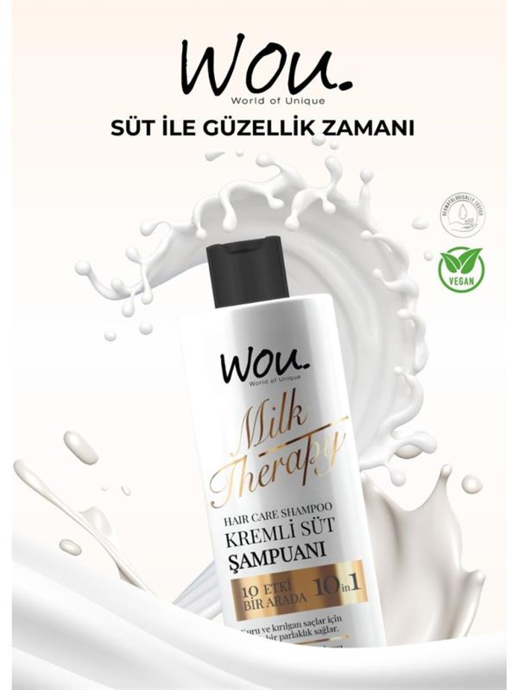 Wou World Of Unique Milk Therapy Şampuan 400 Ml- Süt Proteinli, Kremli, Besleyici 10 Etki Bir Arada Şampuan